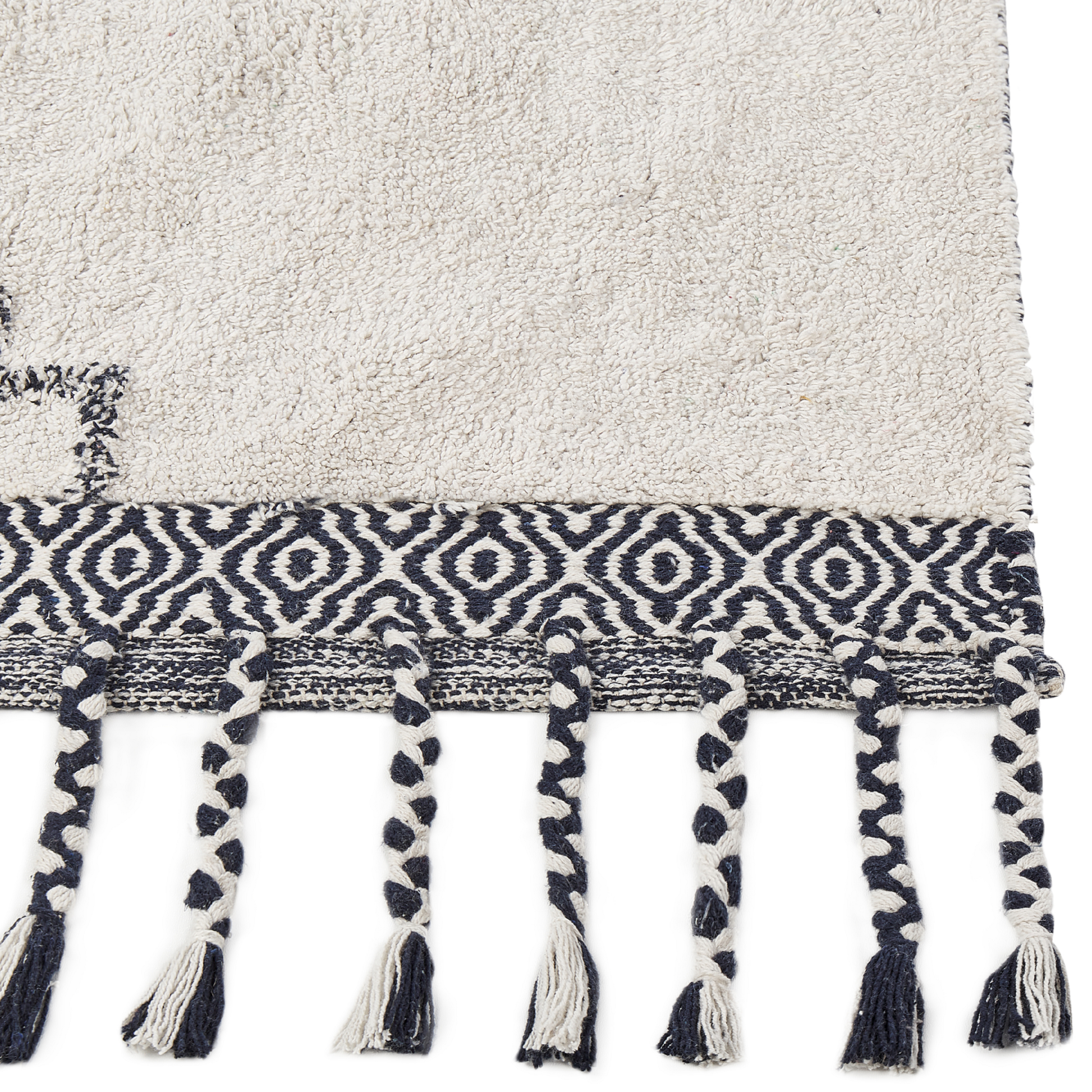 Beschreibung: Ob Eingangsbereich, Schlaf-, Ess- oder Wohnzimmer – dieser rechteckige, längliche Kurzhaarteppich ist der perfekte Begleiter für jeden Wohnraum, dem Sie eine gemütliche und warme Ausstrahlung verliehen wollen. Er ist aus strapazierfähiger Baumwolle gefertigt und garantiert so ein anhaltenden Qualität, die Sie sogar unter Ihren Füssen spüren werden. Dank diesen Eigenschaften stellt er eine tolle Ergänzung für stark frequentierte Bereiche dar. Dabei ist dieser Stoffteppich handgewebt, so ist jedes der Modelle immer ein eindrucksvolles Einzelstück. Material: Baumwolle. Material Zusammensetzung: 100% Baumwolle Gewicht: 7 Montage: Benötigt keine Montage Das Angebot beinhaltet: 1 x Teppich zusätzliche Information: Da der Teppich handgewebt ist, können kleine Farb-, Muster-, bzw. Grössendifferenzen auftreten. Diese Unterschiede stellen jedoch keinen Produktfehler dar., Der Artikel könnte Haare verlieren. Dies ist ein normaler Vorgang und stellt keinen Qualitätsmangel des Produkts dar., Der Artikel benötigt einige Zeit, bis er seinen ursprünglichen Zustand erreicht hat – daher sollte er so schnell wie möglich ausgerollt werden und innerhalb von 72 Stunden seine vollständige Grösse wieder erreichen. Für einen optimalen Effekt sollte man die Teppichkanten mit schweren Gegenständen fixieren. Gestalten: Rechteckig Breite: 140 Länge: 200 Art: Teppich Stil: Boho Allgemeine Farbe: Weiss Muster: Geometrisches Muster Hauptmaterial: Baumwolle Dichte: 1500