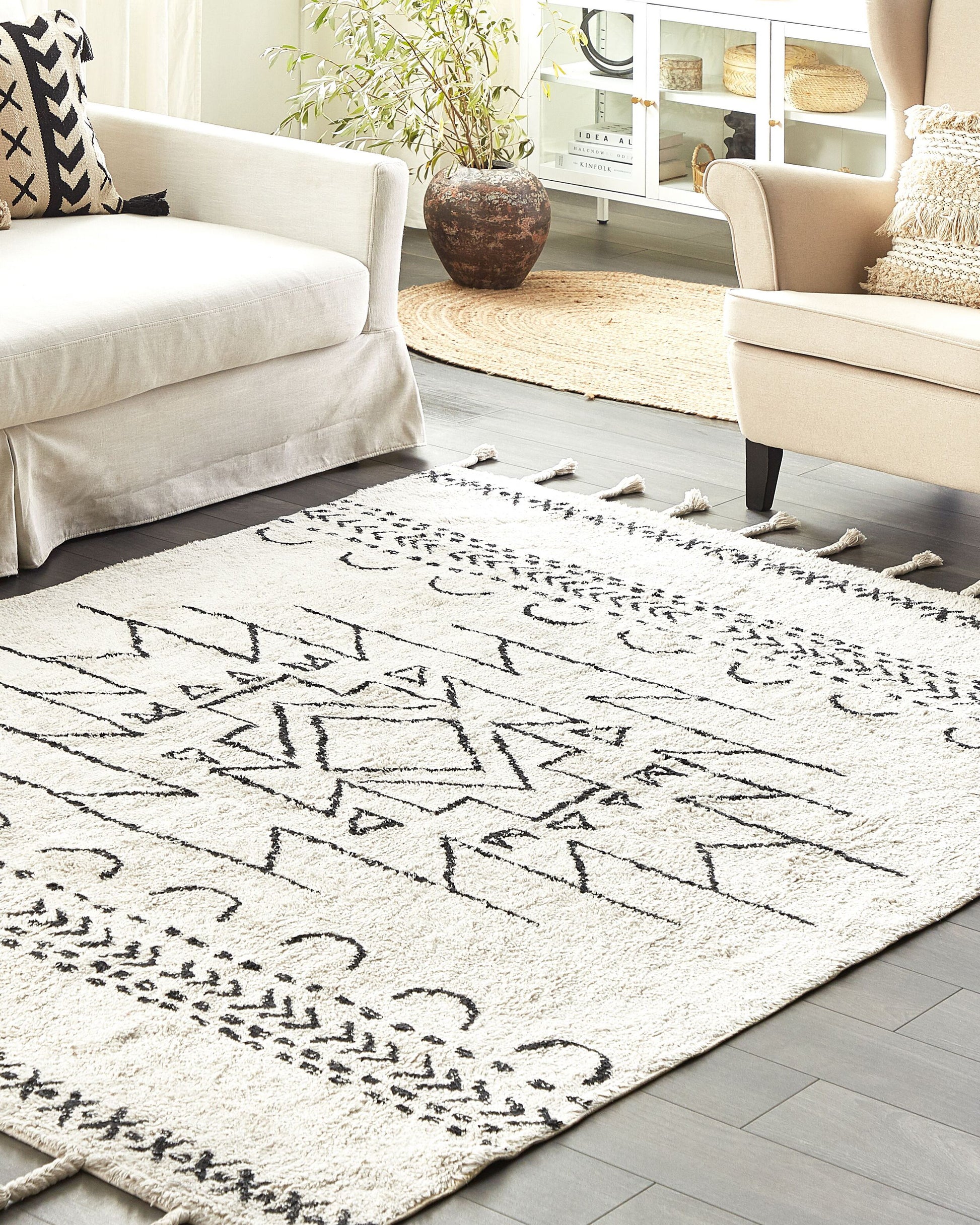 Teppich Baumwolle weiss / schwarz 160 x 230 cm Kurzflor KHOURIBGA