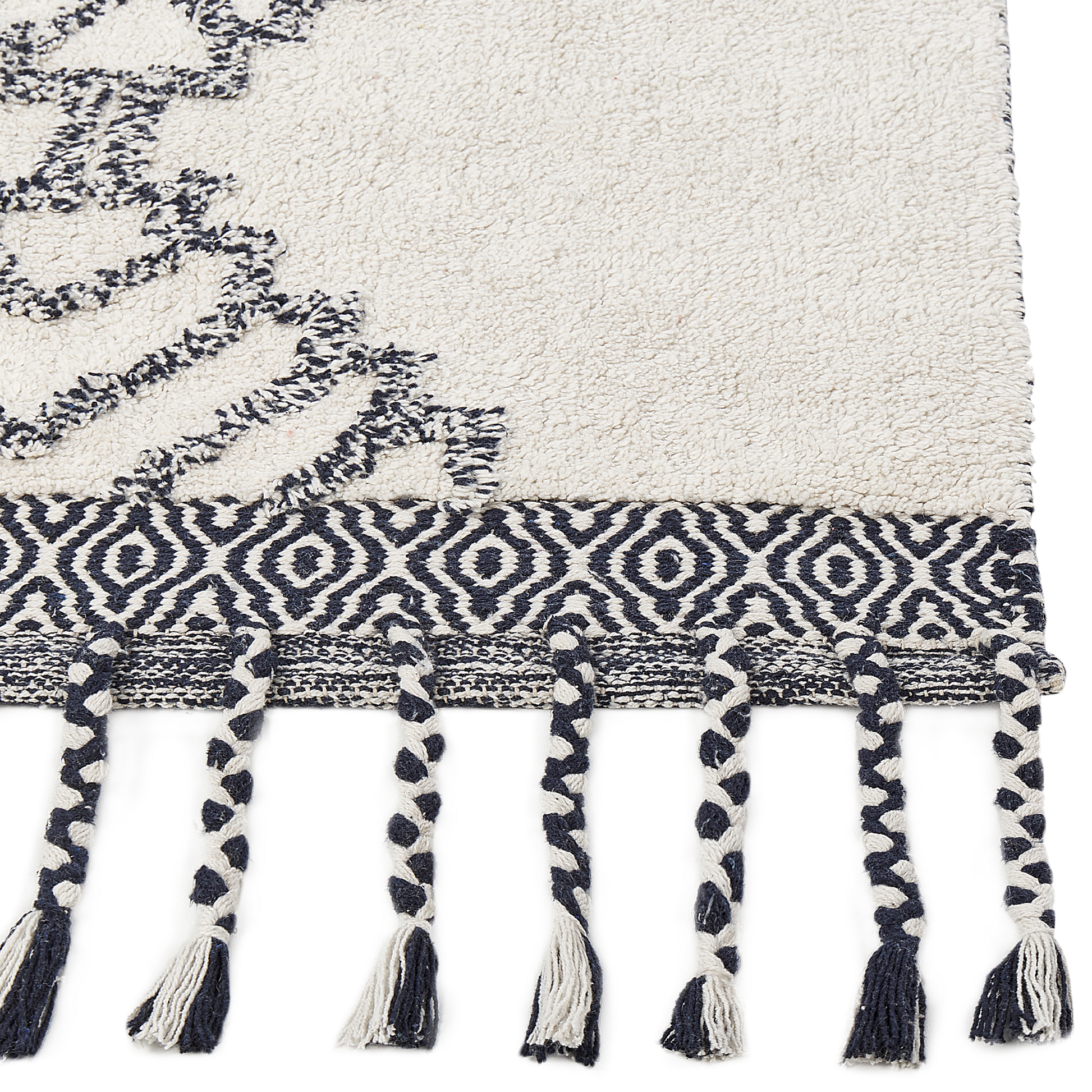 Teppich Baumwolle weiss / schwarz 80 x 150 cm geometrisches Muster Kurzflor ERAY
