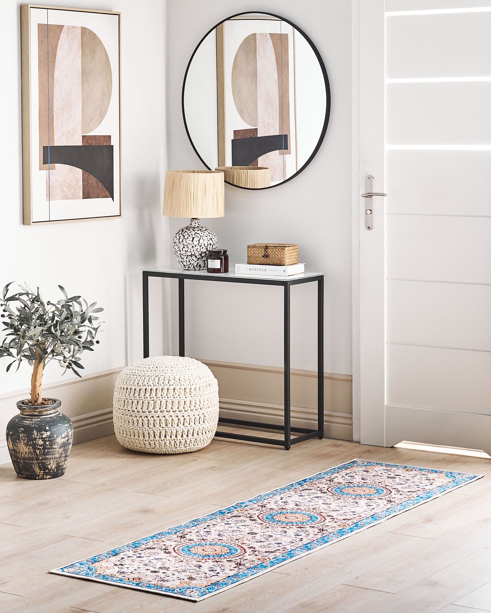Teppich blau / hellbeige 60 x 200 cm orientalisches Muster Kurzflor GORDES