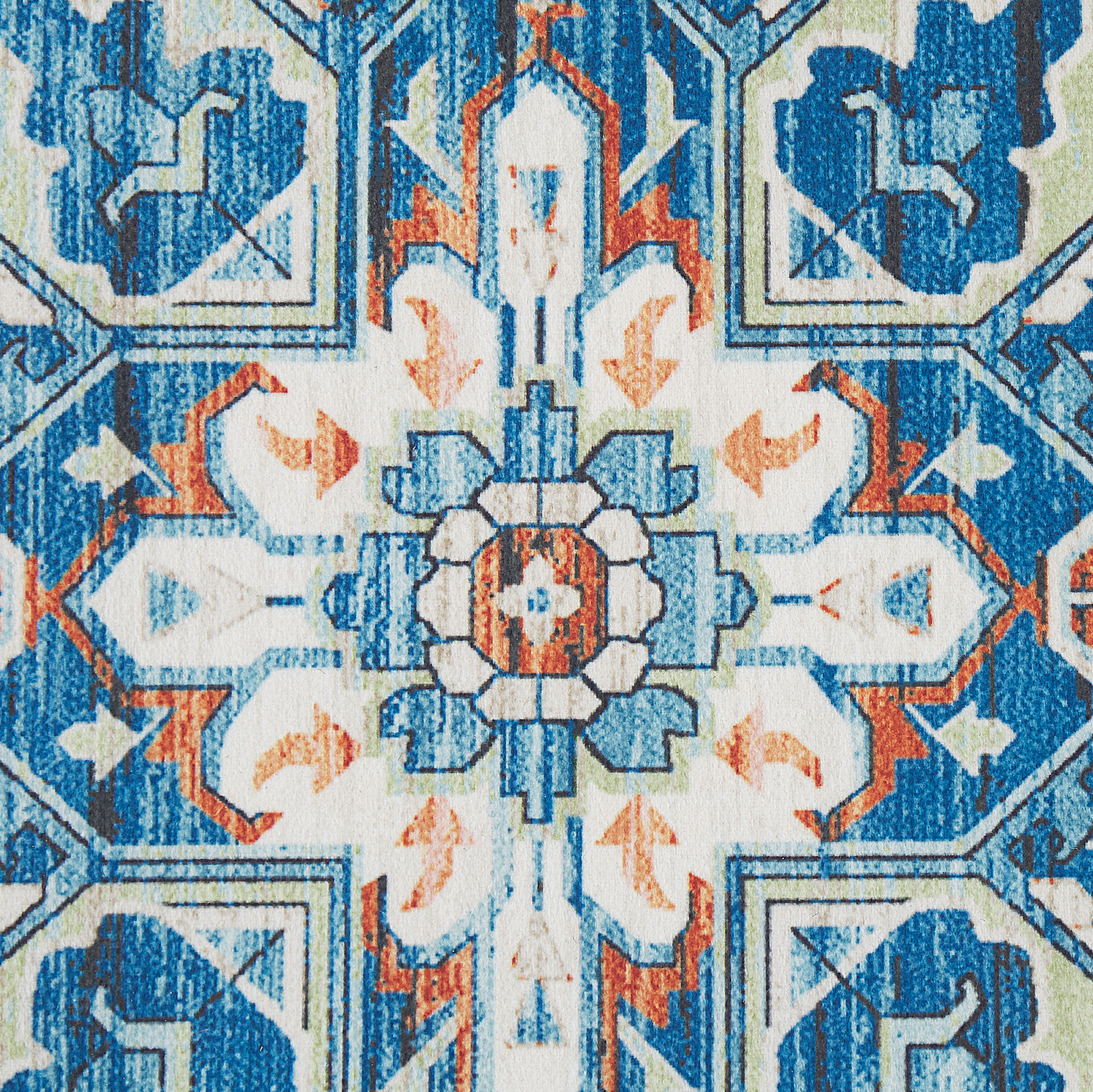 Teppich blau / orange orientalisches Muster 70 x 200 cm Kurzflor RITAPURAM