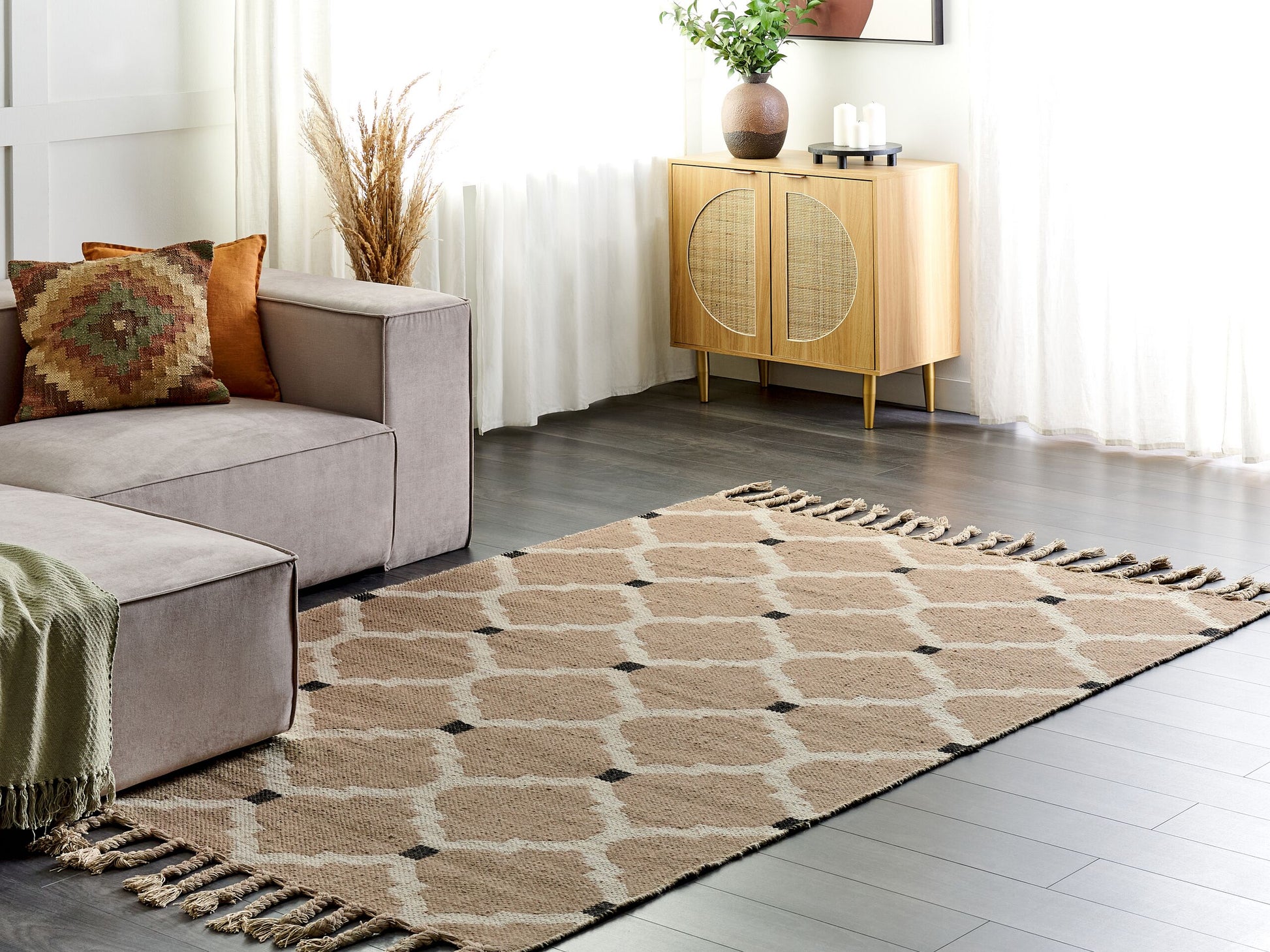 Teppich Jute beige 160 x 230 cm geometrisches Muster Kurzflor ORENCIK