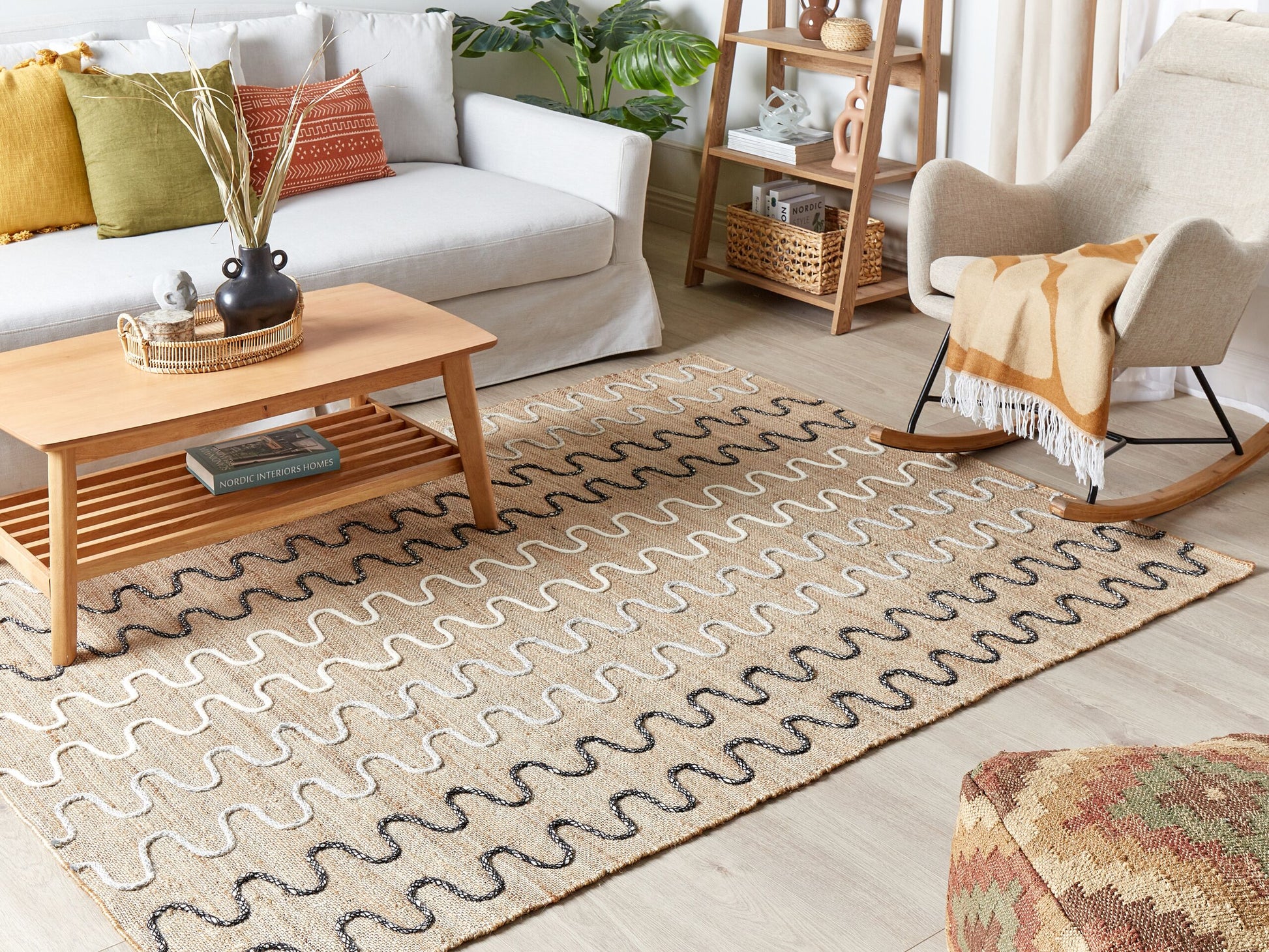 Dieser Teppich verleiht Ihrem Wohn- oder Schlafzimmer eine besondere Note. Aus hochwertiger, strapazierfähiger Jute gefertigt, zeichnet sich der Teppich durch ein auffälliges, regelmässiges Muster aus, das Ihre Einrichtung bereichern wird. Mit seiner Mischung aus natürlichen und neutralen Farben passt dieser Teppich perfekt zu fast jeder Art von Einrichtung, von traditionell über Boho bis hin zu modern. Material: Jute. Zusätzliches Material: Wolle, Baumwolle. Material Zusammensetzung: 60% Jute, 20% Wolle, 20% Baumwolle Gewicht: 6 Montage: Benötigt keine Montage Das Angebot beinhaltet: 1 x Teppich zusätzliche Information: Da der Teppich handgewebt ist, können kleine Farb-, Muster-, bzw. Grössendifferenzen auftreten. Diese Unterschiede stellen jedoch keinen Produktfehler dar., Der Artikel benötigt einige Zeit, bis er seinen ursprünglichen Zustand erreicht hat – daher sollte er so schnell wie möglich ausgerollt werden und innerhalb von 72 Stunden seine vollständige Grösse wieder erreichen. Für einen optimalen Effekt sollte man die Teppichkanten mit schweren Gegenständen fixieren. Gestalten: Rechteckig Breite: 160 Länge: 230 Art: Teppich Stil: Rustikal Allgemeine Farbe: Beige Muster: Geometrisches Muster Hauptmaterial: Jute Dichte: 1650