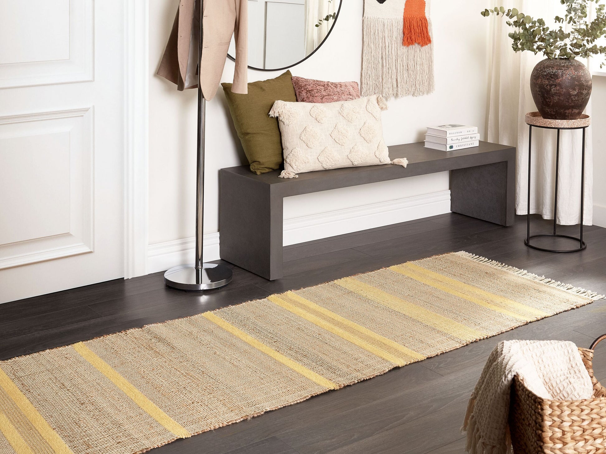 Teppich Jute beige / gelb 80 x 300 cm Streifenmuster Kurzflor zweiseitig TALPUR