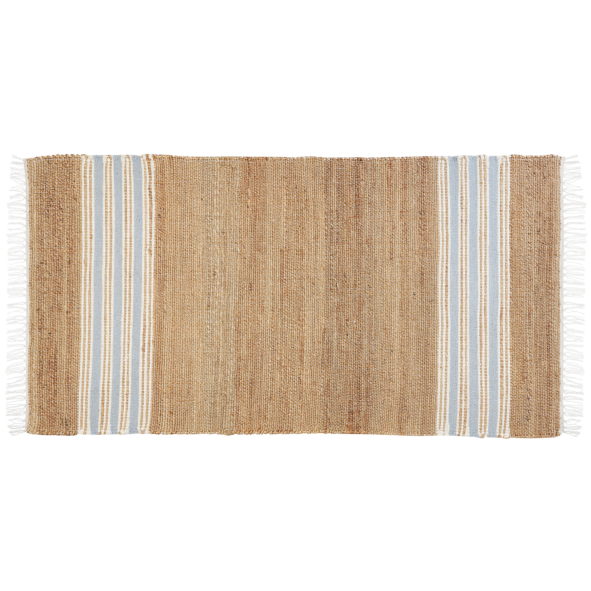 Teppich Jute beige / hellblau 80 x 150 cm Streifenmuster Kurzflor zweiseitig MIRZA