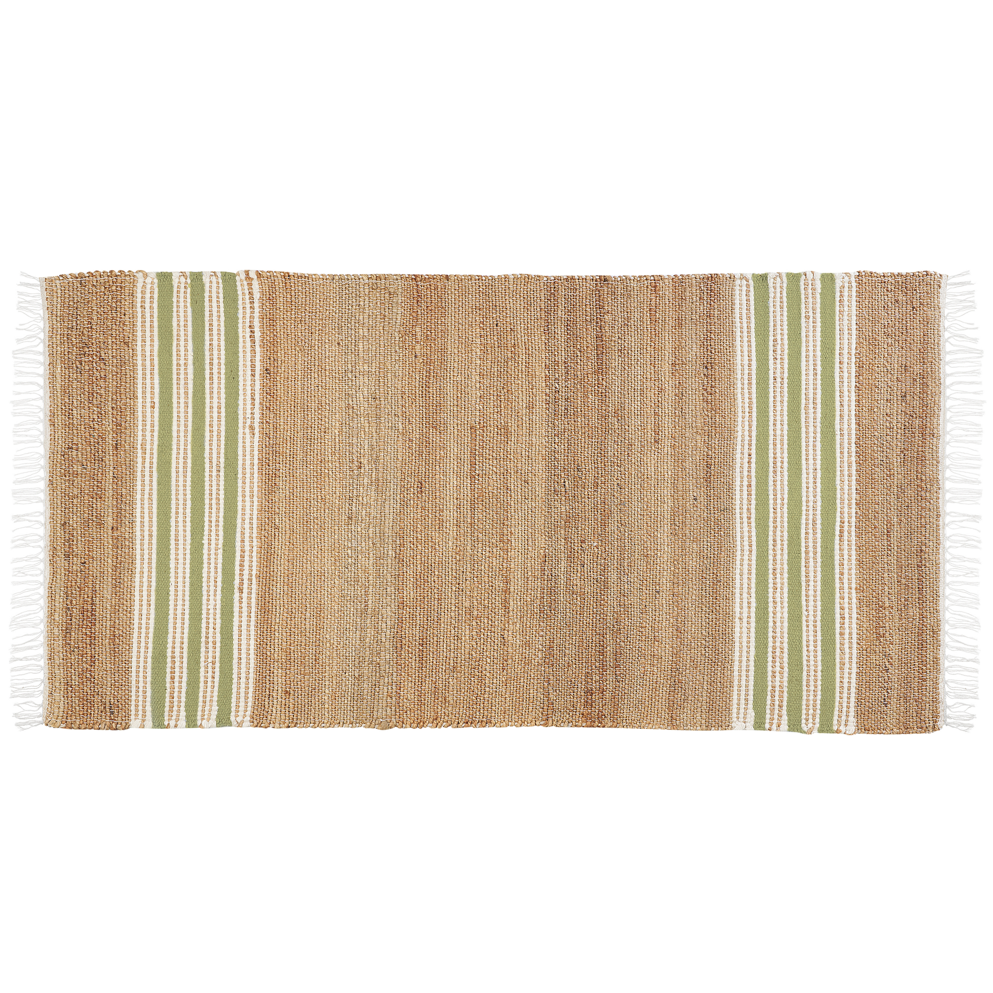 Teppich Jute beige / olivgrün 80 x 150 cm Streifenmuster Kurzflor zweiseitig MIRZA