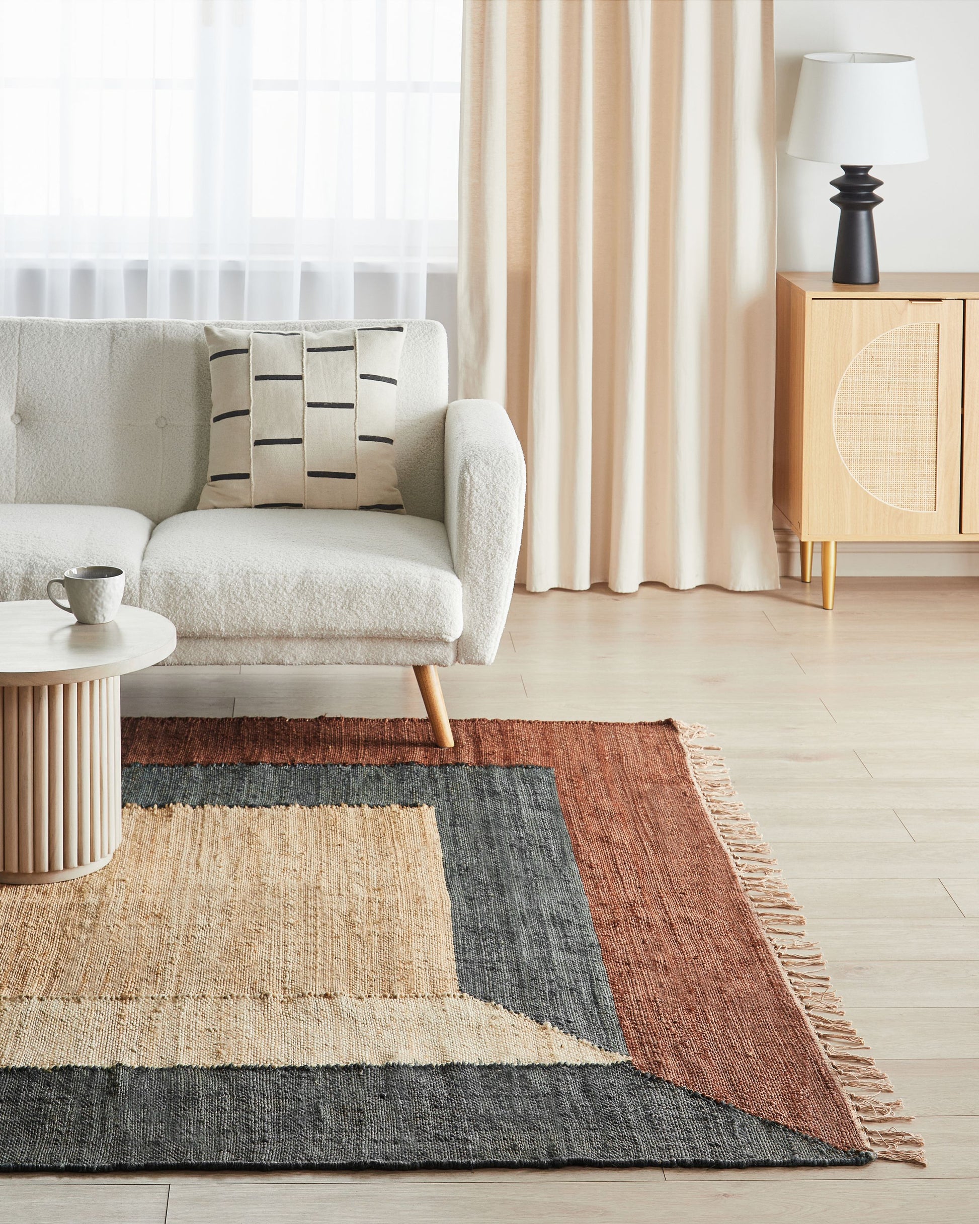 Teppich Jute mehrfarbig 200 x 300 cm geometrisches Muster Kurzflor ORTAKOY