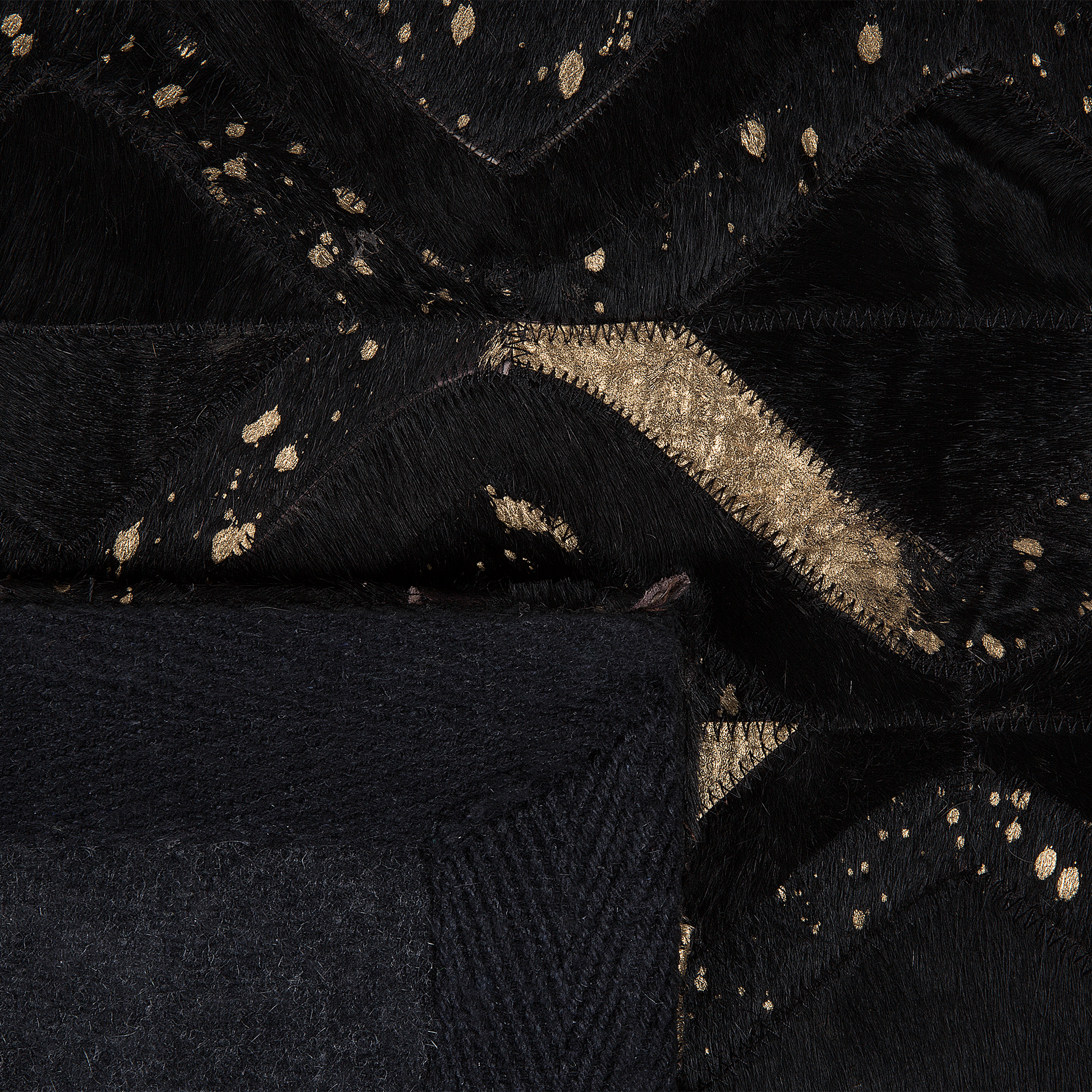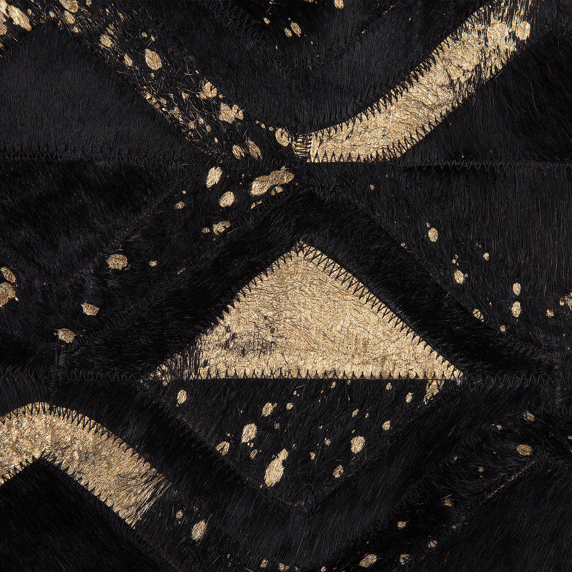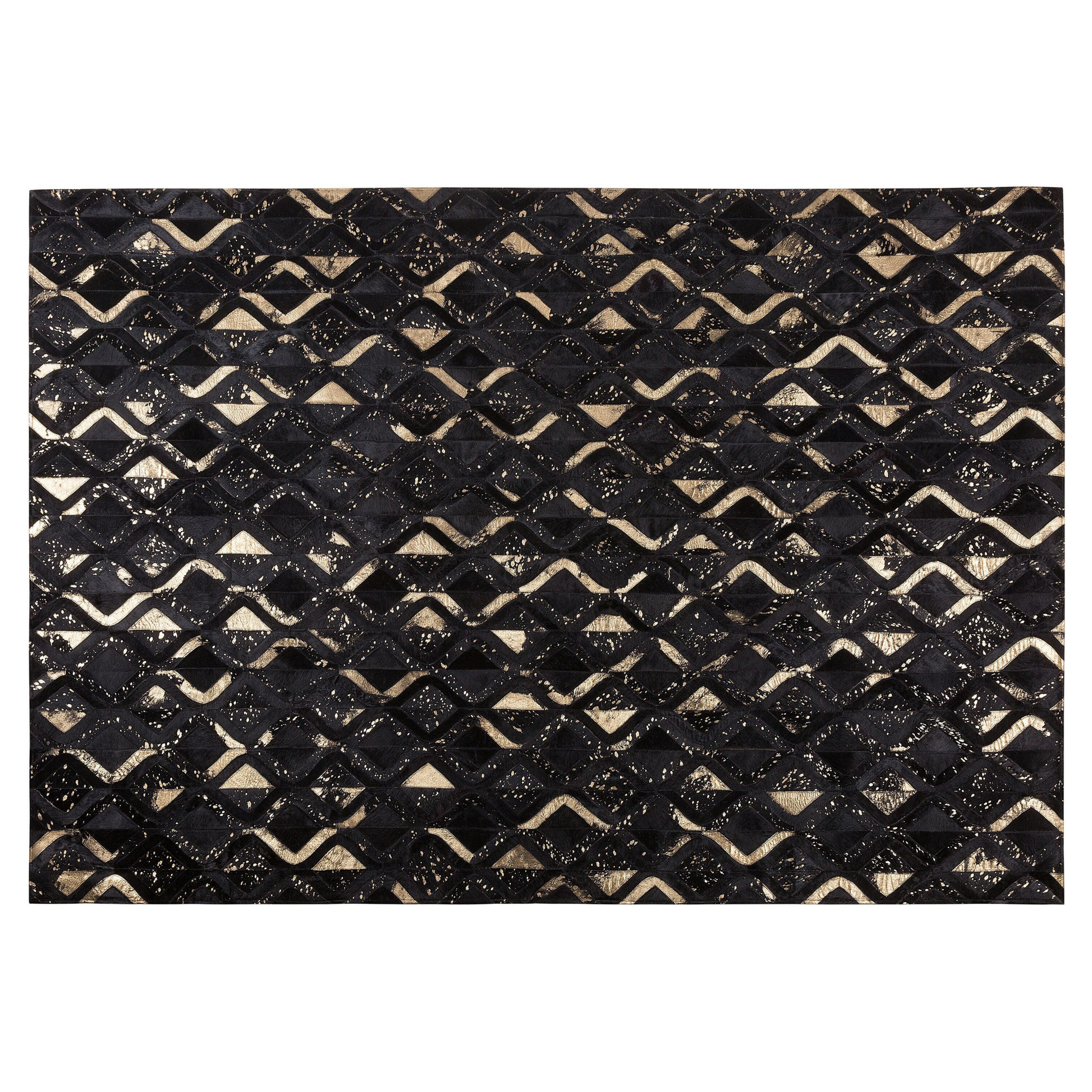 Teppich Kuhfell schwarz-gold 140 x 200 cm ZickZack-Muster Kurzflor DEVELI