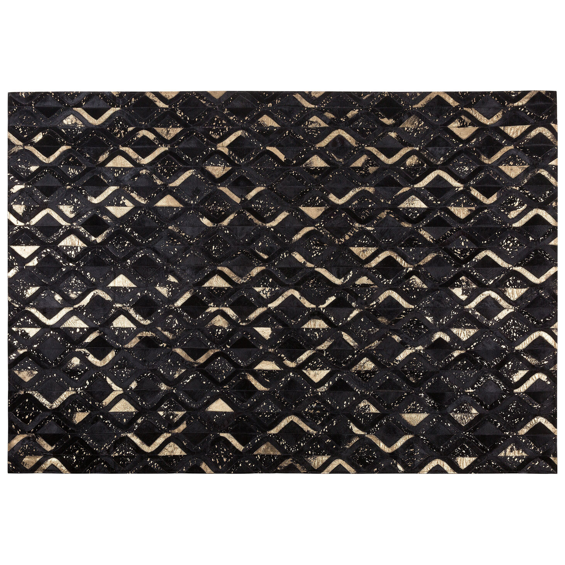 Teppich Kuhfell schwarz-gold 160 x 230 cm ZickZack-Muster Kurzflor DEVELI