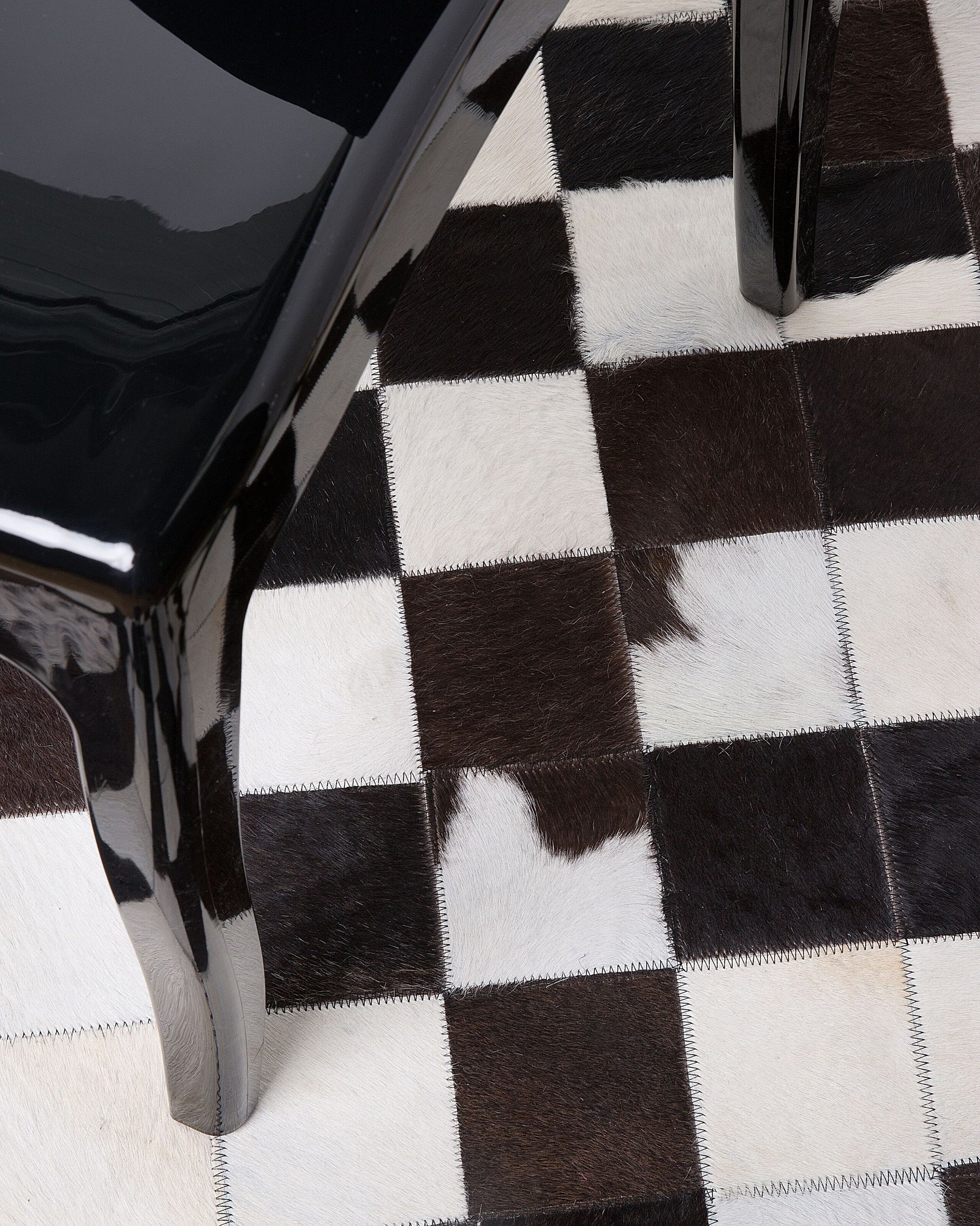 Beschreibung: Dieser fantastische Fellteppich ist ein echtes Designer-Schmuckstück und bietet vielseitige Nutzungsmöglichkeiten. Der handgefertigte, runde Echtleder-Läufer ist aus quadratischen schwarzen, braunen, beigen und weissen Lederstücken zusammengesetzt, die in einem willkürlichem Muster angeordnet sind. Das hochwertige als auch pflegeleichte Material wird Ihnen viele Jahre Freude bereiten. Material: Kuhfell. Material Zusammensetzung: 100% Echtleder Gewicht: 3 Montage: Benötigt keine Montage Das Angebot beinhaltet: 1 x Teppich zusätzliche Information: Der Artikel könnte Haare verlieren. Dies ist ein normaler Vorgang und stellt keinen Qualitätsmangel des Produkts dar., Da der Teppich handgewebt ist, können kleine Farb-, Muster-, bzw. Grössendifferenzen auftreten. Diese Unterschiede stellen jedoch keinen Produktfehler dar., Der Artikel benötigt einige Zeit, bis er seinen ursprünglichen Zustand erreicht hat – daher sollte er so schnell wie möglich ausgerollt werden und innerhalb von 72 Stunden seine vollständige Grösse wieder erreichen. Für einen optimalen Effekt sollte man die Teppichkanten mit schweren Gegenständen fixieren., Um die Qualität und Langlebigkeit des Materials zu erhalten, sollten Sie den Teppich nicht in stark beanspruchten Bereichen platzieren., Leder ist ein Naturprodukt. Es kann zu einer Faltenbildung kommen, die durch einen natürlichen Vorgang entsteht. Leder kann sich durch Nutzung ausdehnen und bildet sich nicht komplett zurück in den ursprünglichen Zustand. Farb- und Strukturunterschiede, Narben, Falten und sonstige Naturmerkmale sind Echtheitsbeweise und keine zur Reklamation berechtigende Fehler. Gestalten: Rund Breite: 140 Länge: 140 Art: Teppich Stil: Glamourös Allgemeine Farbe: Schwarz Schatten: Creme Muster: Kariertes Muster Hauptmaterial: Kuhfell Dichte: 2000