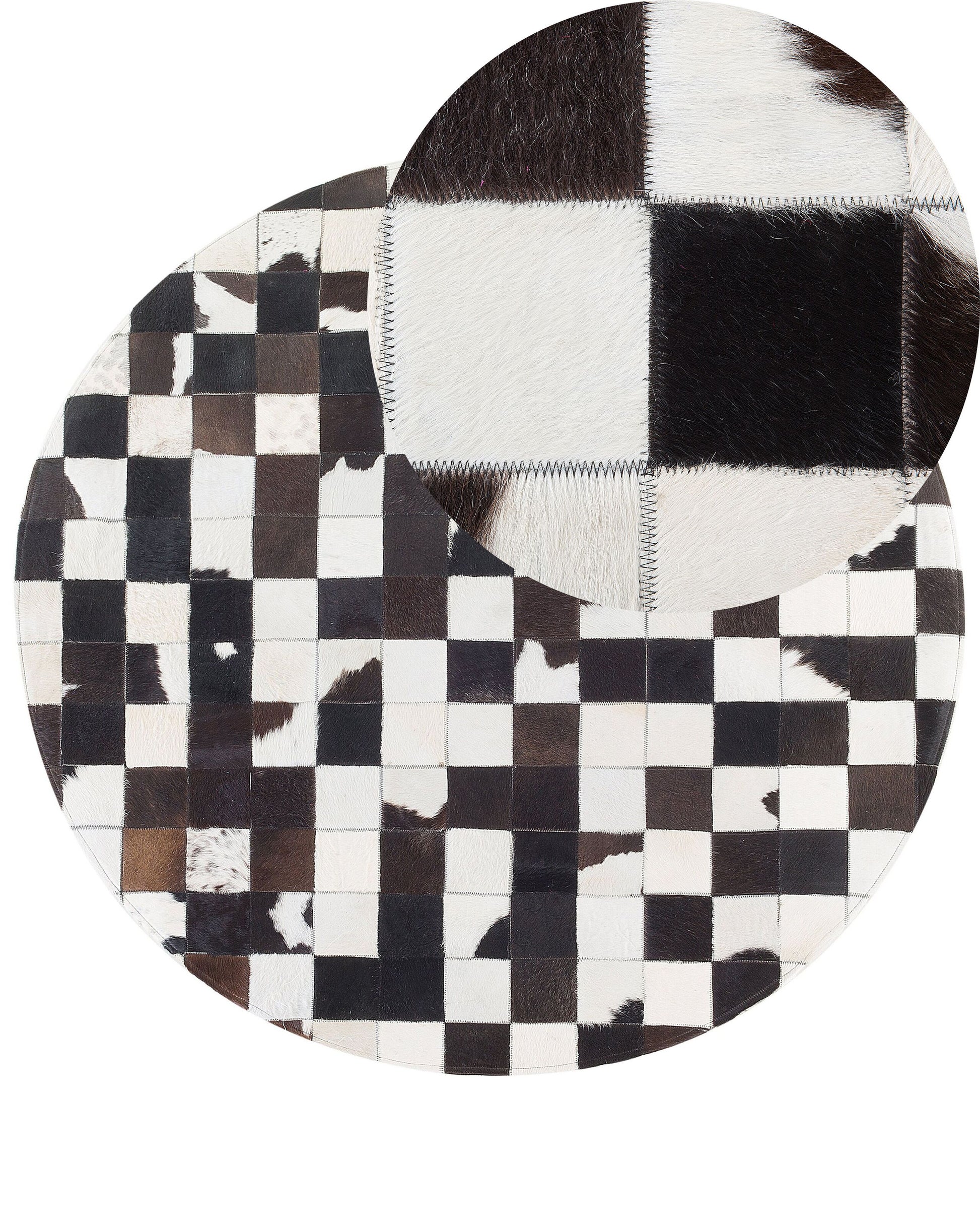 Teppich Kuhfell schwarz-weiss ⌀ 140 cm Patchwork Kurzflor BERGAMA
