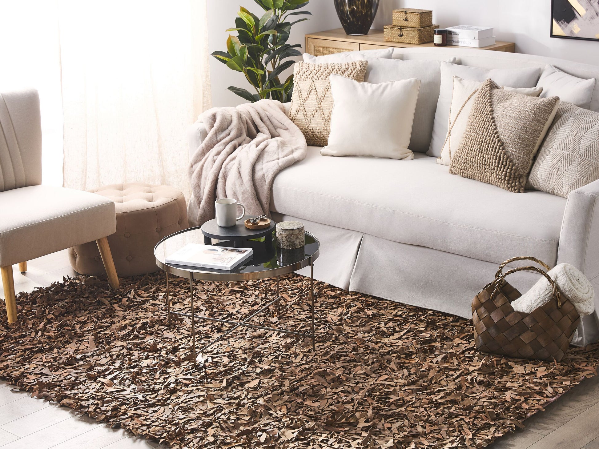 Teppich Leder beige 140 x 200 cm Shaggy MUT