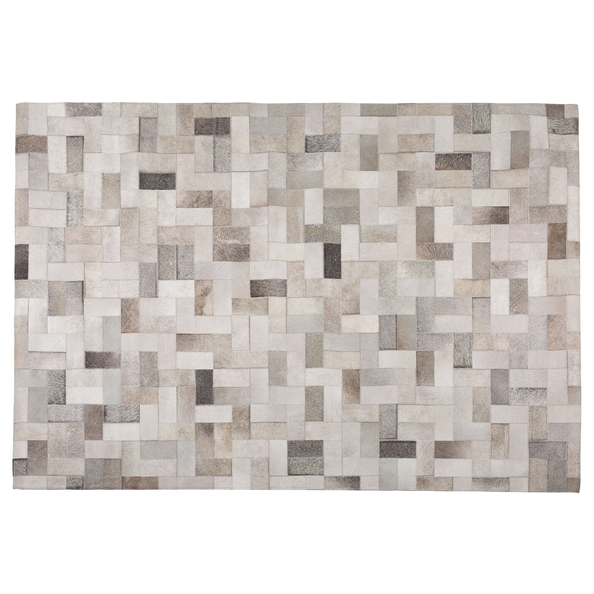 Der rechteckige, handgefertigte Designer-Teppich besteht aus länglichen Lederstücken in verschiedenen Grautönen, die in einem abstrakten Mosaikmuster miteinander verflochten sind. Das beeindruckende Muster kommt dank der zurückhaltenden Naturtöne besonders gut zur Geltung. Der Fellteppich passt mit seiner gemütlichen und eleganten Ausstrahlung zu allen Wohnstilen. Der Lederteppich verfügt über eine schonende Unterseite aus Filz.  Material: Echtleder. Material Zusammensetzung: 100% Echtleder Gewicht: 5 Montage: Benötigt keine Montage Das Angebot beinhaltet: 1 x Teppich zusätzliche Information: Der Artikel könnte Haare verlieren. Dies ist ein normaler Vorgang und stellt keinen Qualitätsmangel des Produkts dar., Da der Teppich handgewebt ist, können kleine Farb-, Muster-, bzw. Grössendifferenzen auftreten. Diese Unterschiede stellen jedoch keinen Produktfehler dar., Um die Qualität und Langlebigkeit des Materials zu erhalten, sollten Sie den Teppich nicht in stark beanspruchten Bereichen platzieren., Leder ist ein Naturprodukt. Es kann zu einer Faltenbildung kommen, die durch einen natürlichen Vorgang entsteht. Leder kann sich durch Nutzung ausdehnen und bildet sich nicht komplett zurück in den ursprünglichen Zustand. Farb- und Strukturunterschiede, Narben, Falten und sonstige Naturmerkmale sind Echtheitsbeweise und keine zur Reklamation berechtigende Fehler. Gestalten: Rechteckig Breite: 140 Länge: 200 Art: Teppich Stil: Modern Allgemeine Farbe: Grau Schatten: Hellgrau Muster: Patchwork Hauptmaterial: Echtleder Dichte: 2000