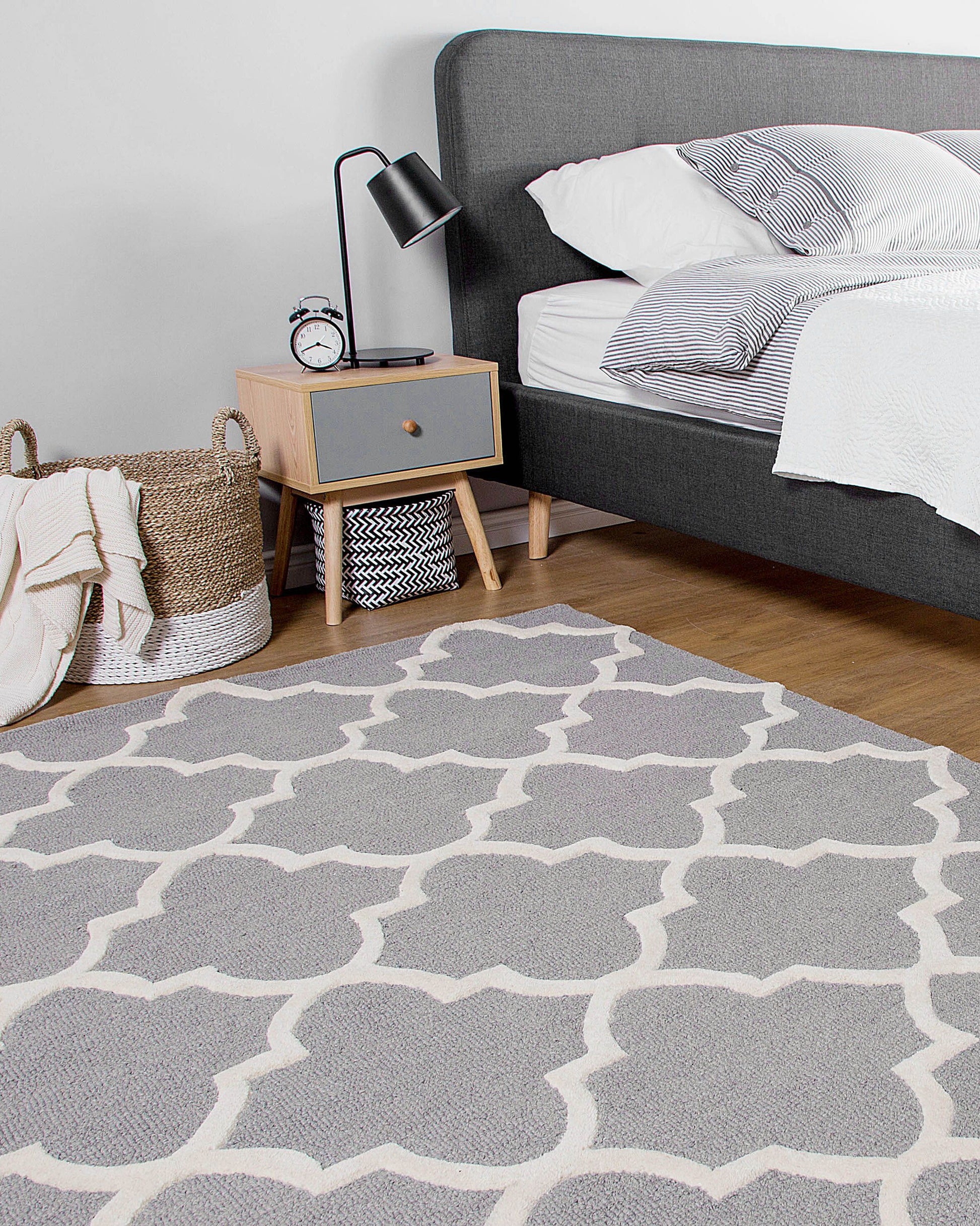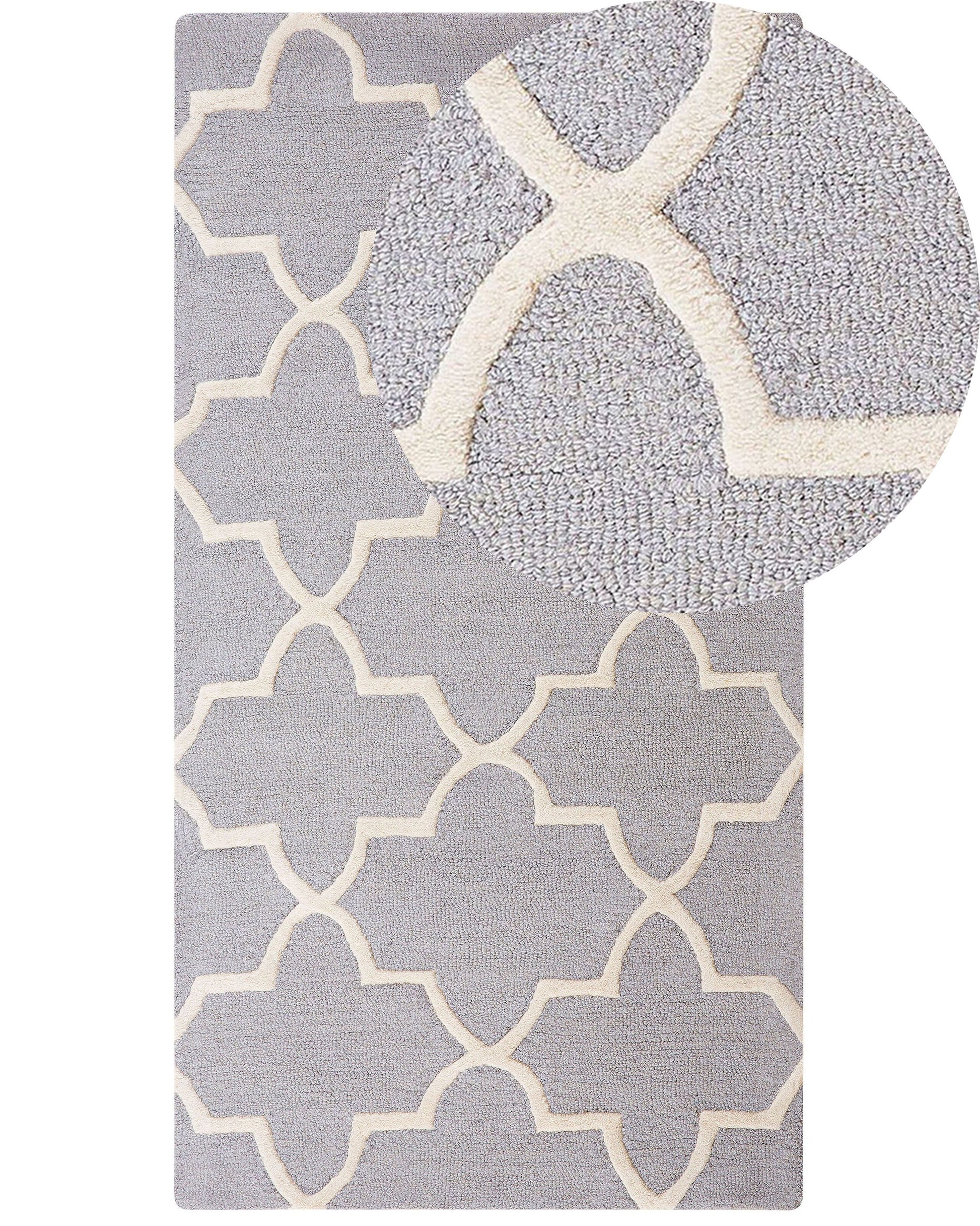 Teppich Wolle grau 80 x 150 cm marokkanisches Muster Kurzflor SILVAN