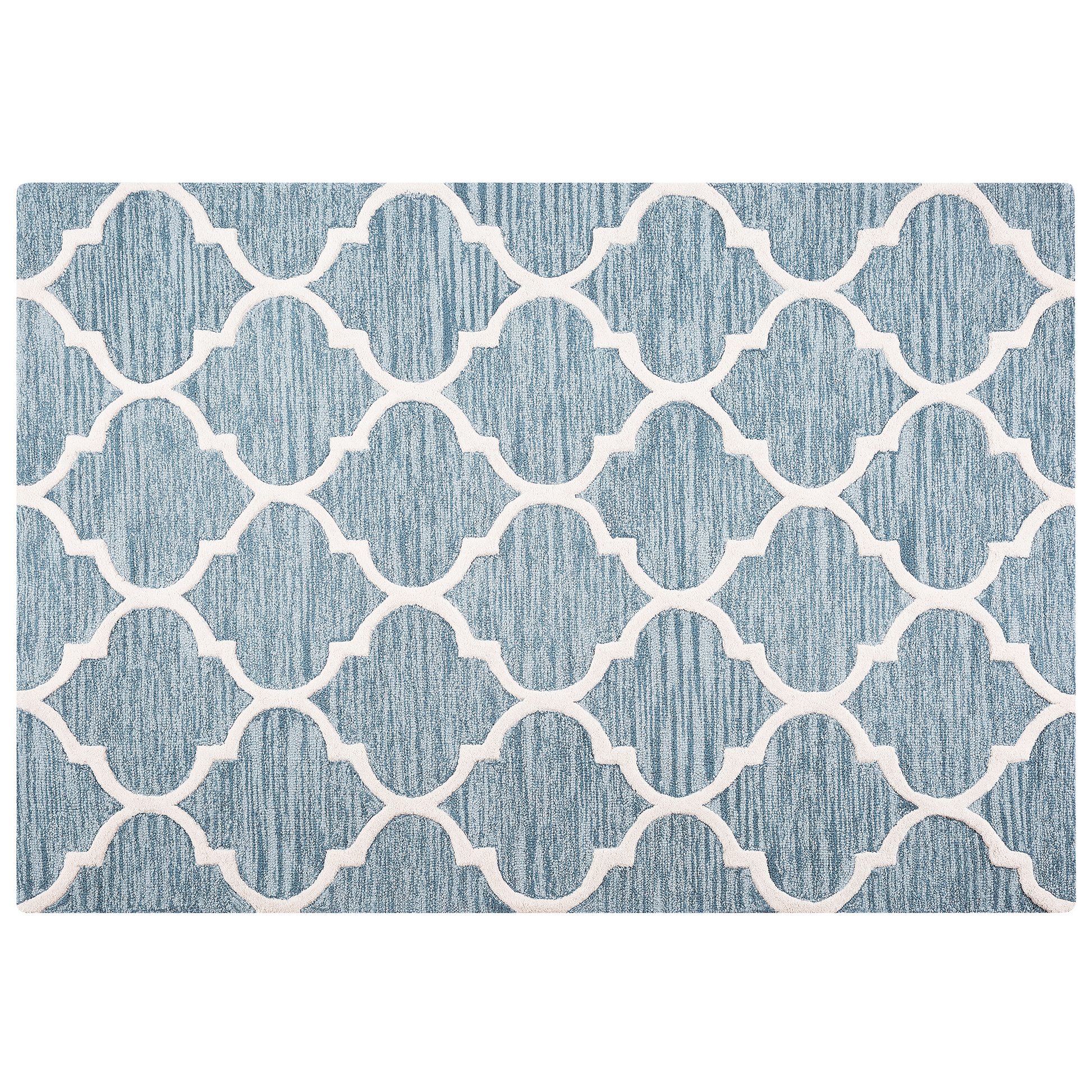 Dieser orientalischer Klassiker bringt mit seiner exotischen Optik einen Hauch von Tausendundeiner Nacht mit und passt dank der neutralen Farbtöne in jedes Ess-, Schlaf, oder Wohnzimmer hinein. Da das Schmuckstück aus angenehmer Baumwolle und Wolle besteht wird der Kurzflorteppich Ihre Füsse mit einem angenehmen Laufgefühl sowie einer weichen Haptik regelrecht verwöhnen. Um die beste Qualität als auch gestalterische Originalität zu gewährleisten entsteht jedes Modell in libevoller Handarbeit, so it auch jedes einzlene Stück von einzigartiger Schönheit.  Material: Wolle. Material Zusammensetzung: 100% Wolle Gewicht: 11 Montage: Benötigt keine Montage Das Angebot beinhaltet: 1 x Teppich zusätzliche Information: Der Artikel könnte Haare verlieren. Dies ist ein normaler Vorgang und stellt keinen Qualitätsmangel des Produkts dar., Da der Teppich handgewebt ist, können kleine Farb-, Muster-, bzw. Grössendifferenzen auftreten. Diese Unterschiede stellen jedoch keinen Produktfehler dar. Gestalten: Rechteckig Breite: 140 Länge: 200 Art: Teppich Stil: Modern Allgemeine Farbe: Blau Schatten: Hellblau Muster: Marokkanisches Rautenmuster Hauptmaterial: Wolle Dichte: 2800