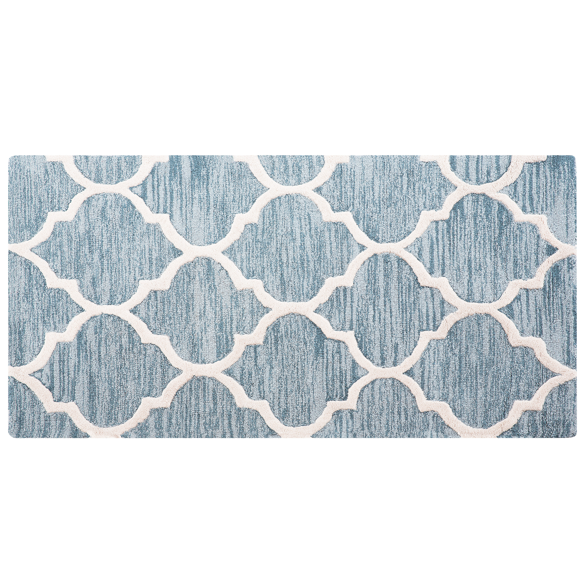 Teppich Wolle hellblau 80 x 150 cm marokkanisches Muster Kurzflor YALOVA