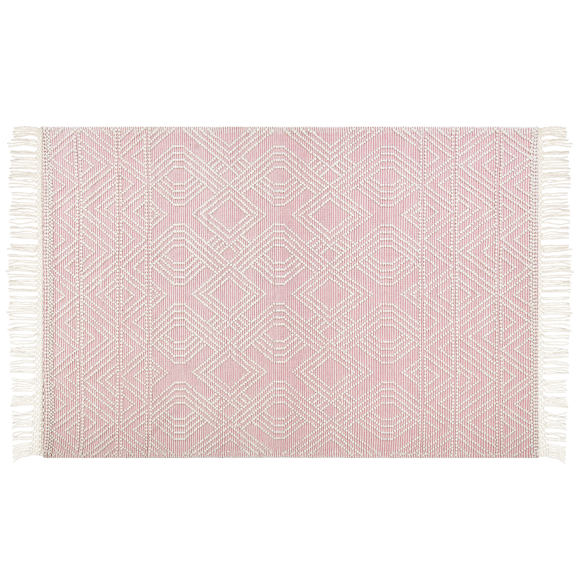 Beschreibung: Ein charmanter Teppich im Boho-Stil - das perfekte Wohnaccessoire für jedes Zimmer. Das geometrische Muster und die dekorativen Quasten setzen sowohl in klassischen als auch in modernen Räumen einen harmonischen Akzent. Der Teppich wurde aus hochwertigen Materialien hergestellt, die ihn gleichzeitig weich und strapazierfähig machen. Er eignet sich sowohl für das Schlafzimmer als auch für das Wohnzimmer und macht den Raum gemütlich und komfortabel. Material: Wolle. Zusätzliches Material: Polyester. Material Zusammensetzung: 55% Wolle, 35% Polyester, 10% Baumwolle Gewicht: 14 Montage: Benötigt keine Montage Das Angebot beinhaltet: 1 x Teppich zusätzliche Information: Der Artikel könnte Haare verlieren. Dies ist ein normaler Vorgang und stellt keinen Qualitätsmangel des Produkts dar., Da der Teppich handgewebt ist, können kleine Farb-, Muster-, bzw. Grössendifferenzen auftreten. Diese Unterschiede stellen jedoch keinen Produktfehler dar., Der Artikel benötigt einige Zeit, bis er seinen ursprünglichen Zustand erreicht hat – daher sollte er so schnell wie möglich ausgerollt werden und innerhalb von 72 Stunden seine vollständige Grösse wieder erreichen. Für einen optimalen Effekt sollte man die Teppichkanten mit schweren Gegenständen fixieren. Gestalten: Rechteckig Breite: 200 Länge: 300 Art: Teppich Stil: Boho Allgemeine Farbe: Rosa Schatten: Pastellrosa Muster: Geometrisches Muster Hauptmaterial: Wolle