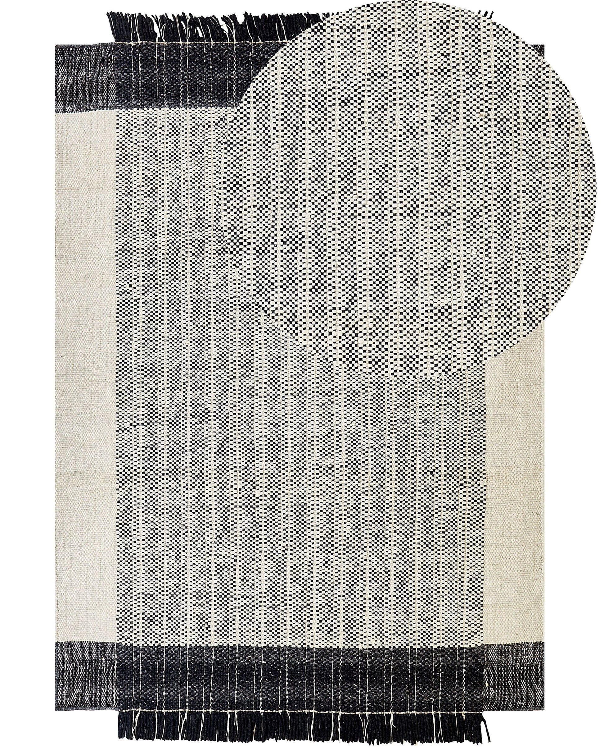 Teppich Wolle schwarz / cremeweiss 160 x 230 cm Kurzflor KETENLI