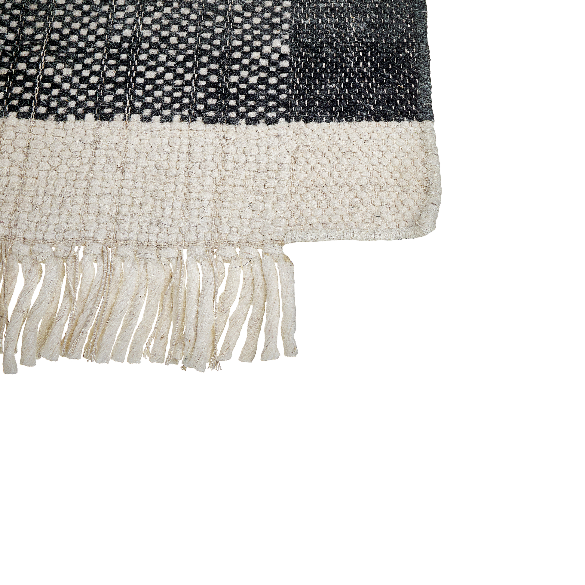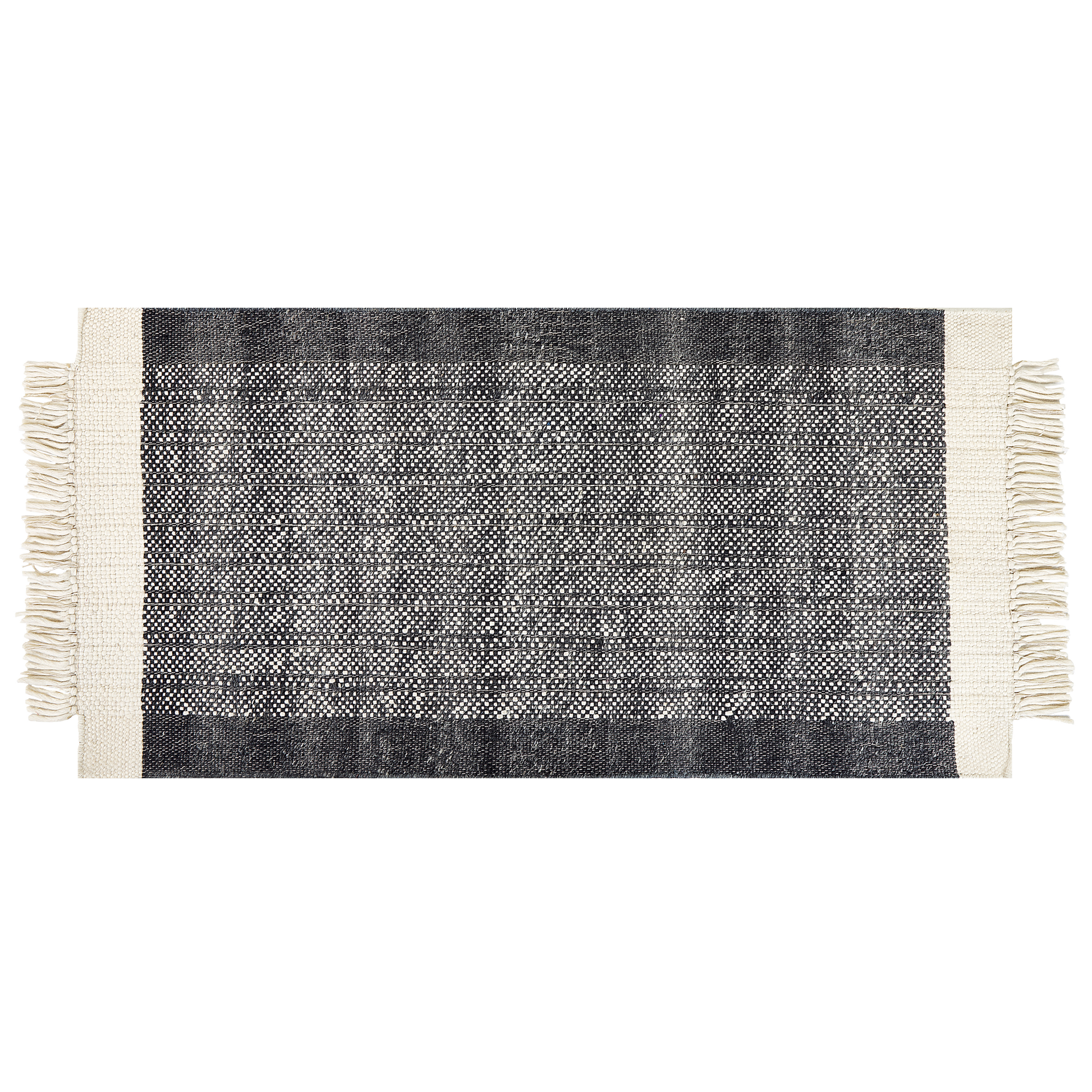 Teppich Wolle schwarz / cremeweiss 80 x 150 cm Streifenmuster Kurzflor ATLANTI