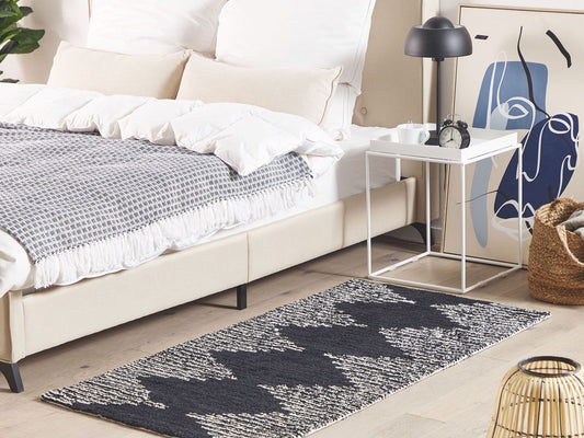 Teppich Baumwolle 80 x 150 cm schwarz / weiss geometrisches Muster Kurzflor BATHINDA