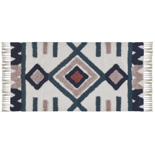 Teppich Baumwolle 80 x 150 cm mehrfarbig geometrisches Muster Kurzflor PURNIA