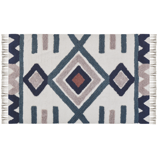 Teppich Baumwolle mehrfarbig 80 x 150 cm geometrisches Muster Fransen Kurzflor KOZLU