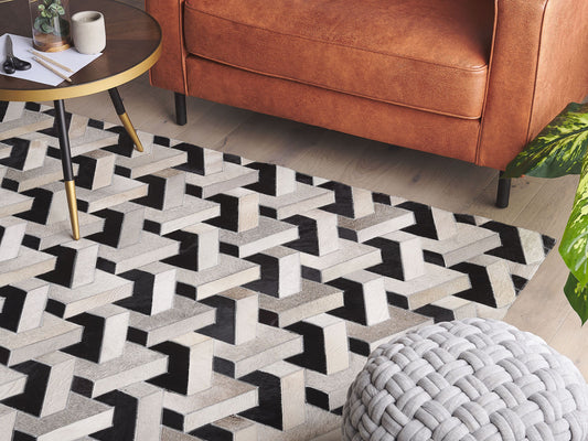 Teppich Kuhfell schwarz / grau 140 x 200 cm Patchwork Kurzflor NARMAN