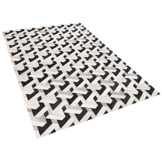 Teppich Kuhfell grau / beige 160 x 230 cm Patchwork Kurzflor ROLUNAY