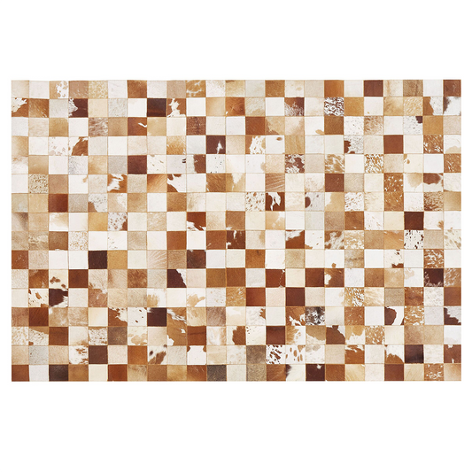 Teppich Kuhfell beige / braun 140 x 200 cm Patchwork Kurzflor KAYABEY
