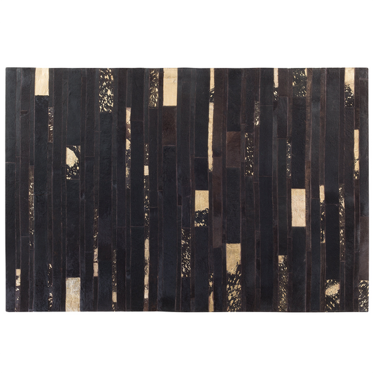 Teppich Kuhfell braun-gold 160 x 230 cm Patchwork Kurzflor ARTVIN