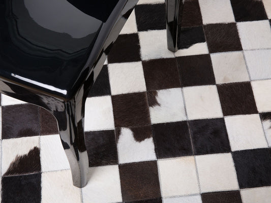 Teppich Kuhfell schwarz-weiss ⌀ 140 cm Patchwork Kurzflor BERGAMA