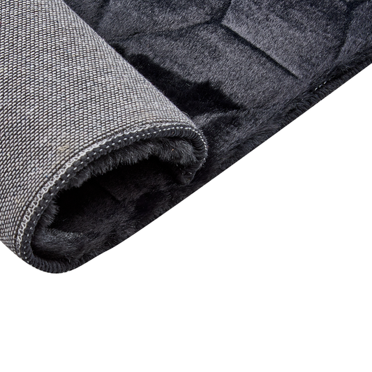 Kunstfellteppich Kaninchen schwarz 80 x 150 cm Shaggy THATTA