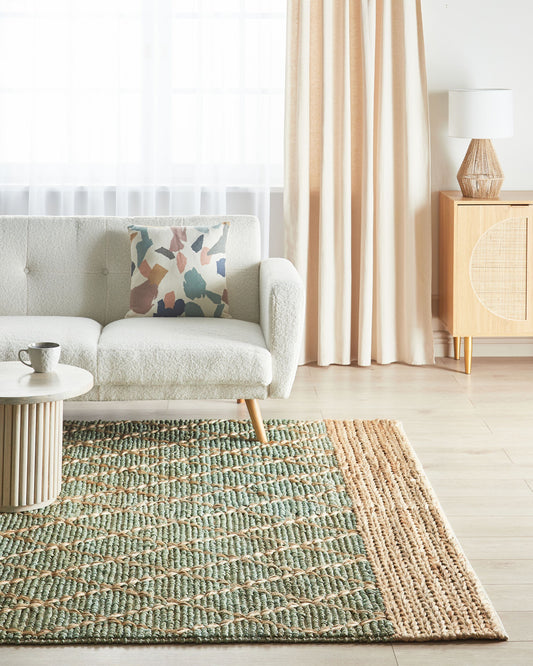 Teppich Jute grün / beige 200 x 300 cm geometrisches Muster Kurzflor TELLIKAYA