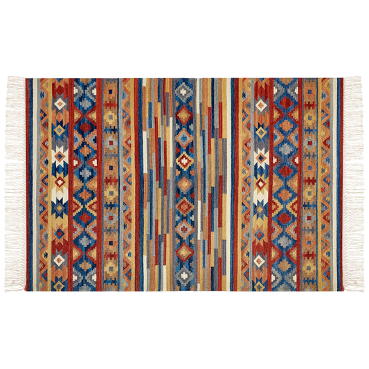 Kelim Teppich Wolle mehrfarbig 140 x 200 cm orientalisches Muster Kurzflor URTSADZOR