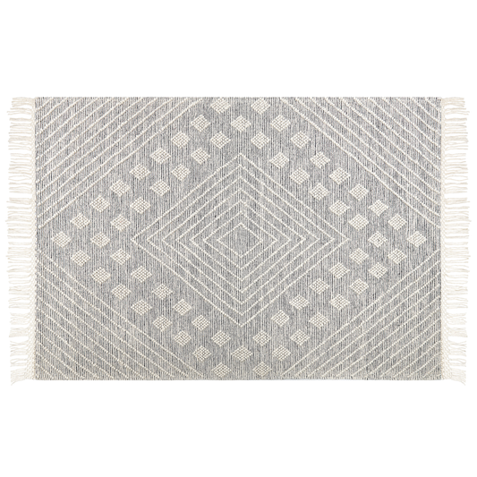 Teppich Wolle grau / weiss 160 x 230 cm geometrisches Muster Kurzflor SAVUR