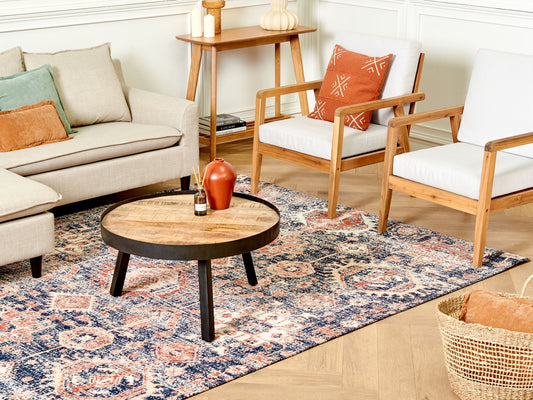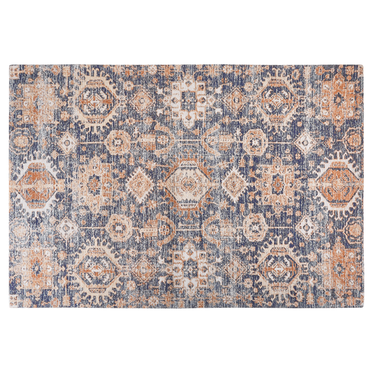 Teppich Baumwolle blau / rot 140 x 200 cm orientalisches Muster Kurzflor KURIN
