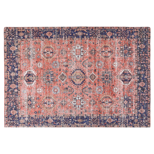 Teppich Baumwolle rot / blau 140 x 200 cm orientalisches Muster Kurzflor KURIN