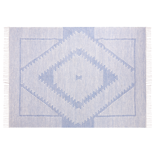 Teppich Baumwolle blau / cremeweiss 160 x 230 cm geometrisches Muster Kurzflor ANSAR