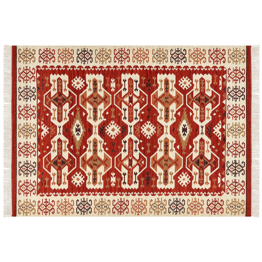 Kelim Teppich Wolle mehrfarbig 80 x 150 cm geometrisches Muster Kurzflor PROSHYAN