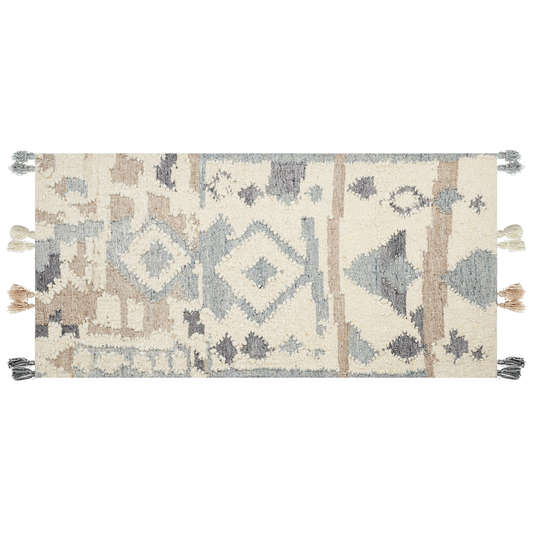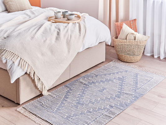 Teppich Baumwolle blau / cremeweiss 80 x 150 cm geometrisches Muster Kurzflor ANSAR