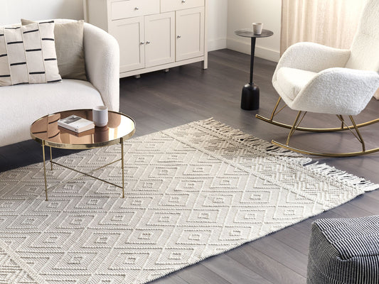 Teppich Wolle beige 160 x 230 cm geometrisches Muster MAVIKENT