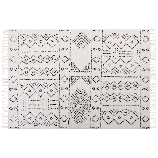 Teppich Wolle weiss / schwarz geometrisches Muster 140 x 200 cm Kurzflor ALKENT
