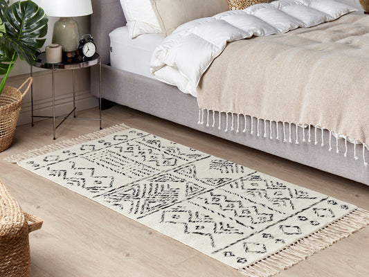 Teppich Wolle weiss / schwarz geometrisches Muster 80 x 150 cm Kurzflor ALKENT