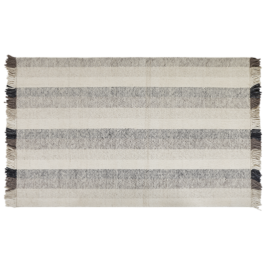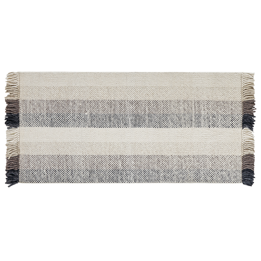 Teppich Wolle cremeweiss 80 x 150 cm Streifenmuster Kurzflor EMIRLER