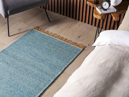 Teppich Jute blau 80 x 150 cm Kurzflor zweiseitig LUNIA