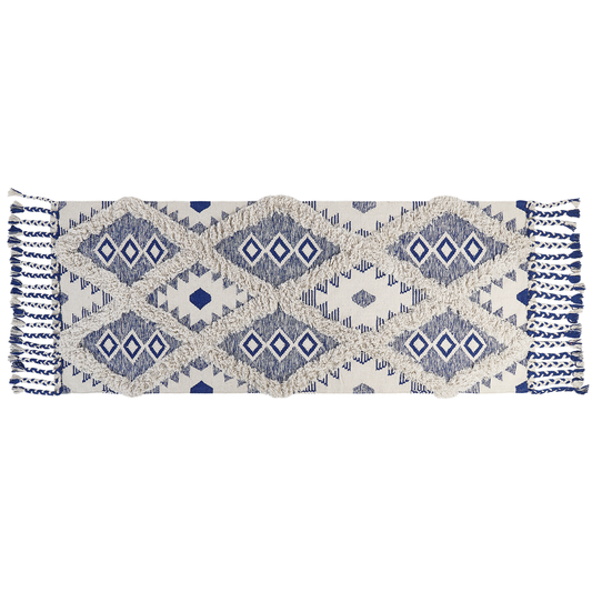 Teppich Baumwolle blau / weiss 80 x 150 cm geometrisches Muster Kurzflor SYNOPA