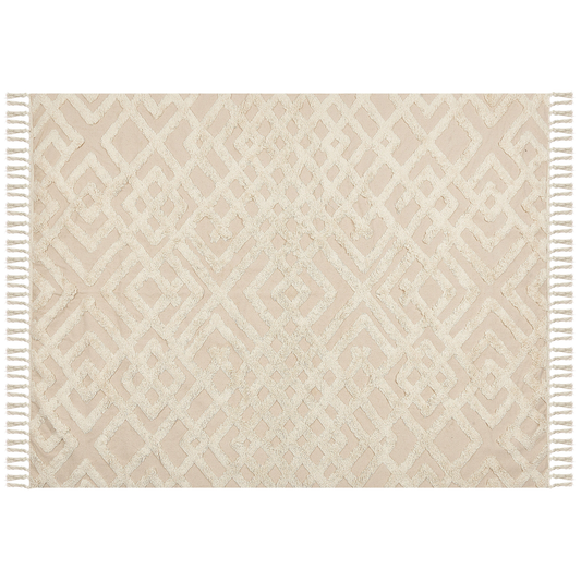 Teppich Baumwolle hellbeige 140 x 200 cm geometrisches Muster Kurzflor ITANAGAR