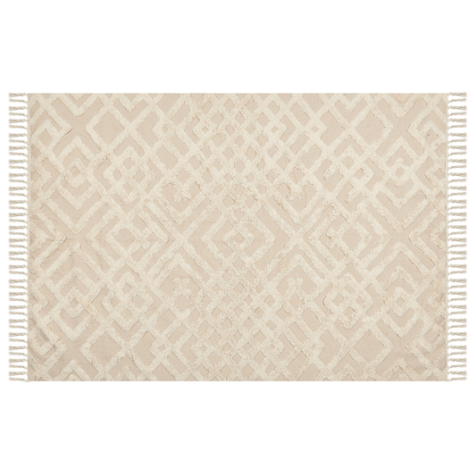 Teppich Baumwolle hellbeige 140 x 200 cm geometrisches Muster Kurzflor ARDAHAN