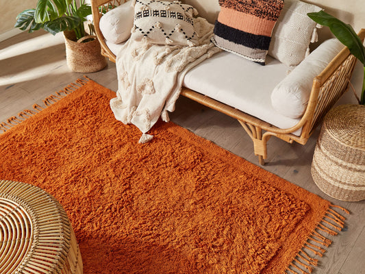 Teppich Baumwolle orange 140 x 200 cm Fransen Shaggy BITLIS