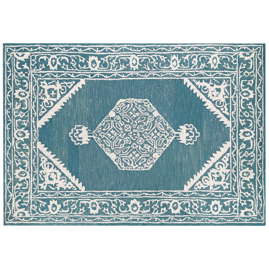Teppich Wolle weiss / blau 160 x 230 cm GEVAS